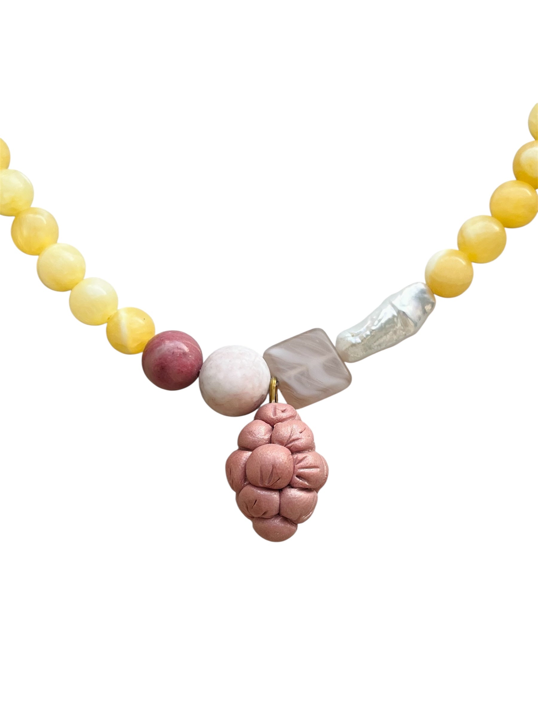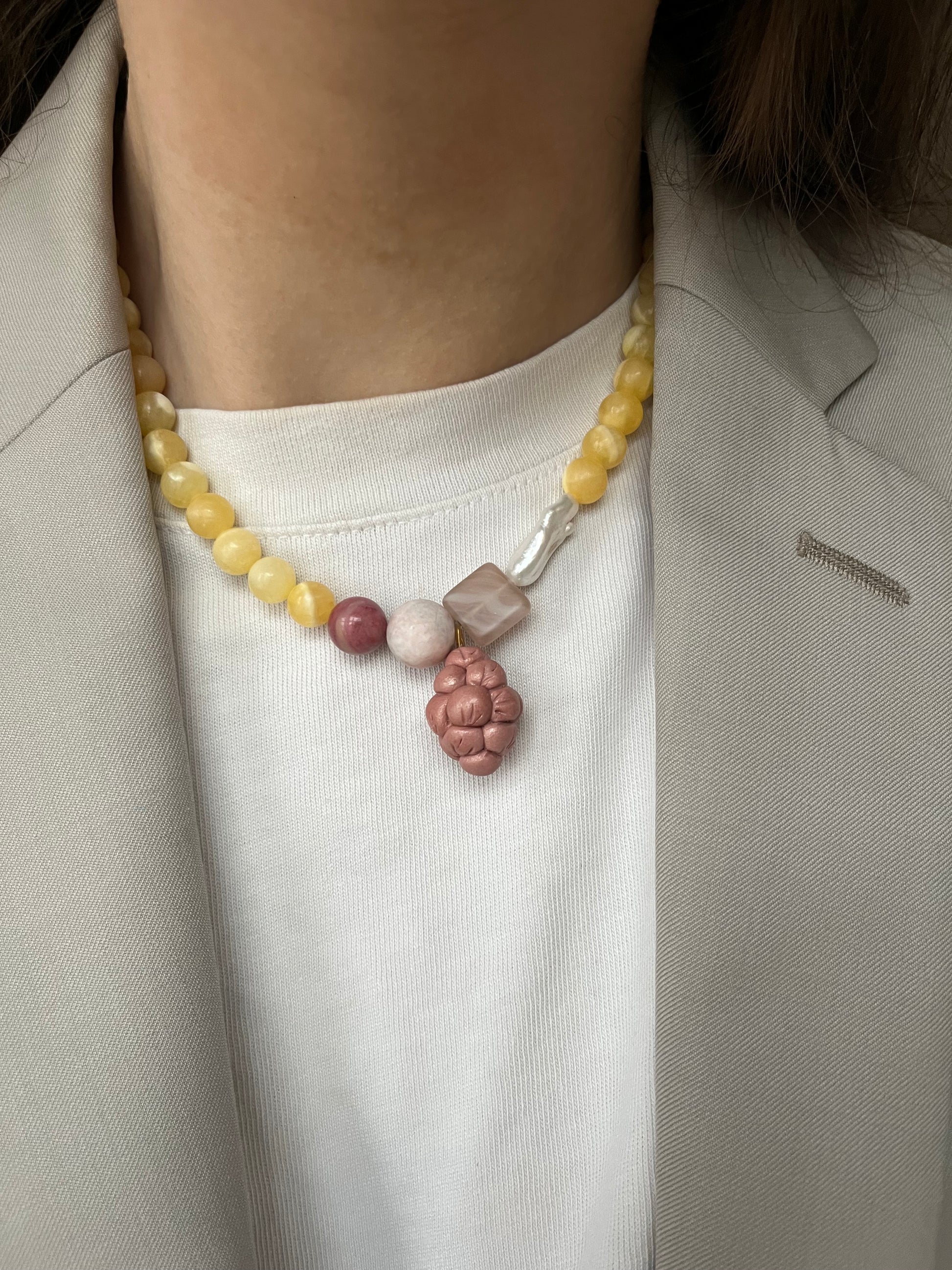 sötét rózsaszín bogyó forma süthető gyurmából amit személyfestékkel színeztem