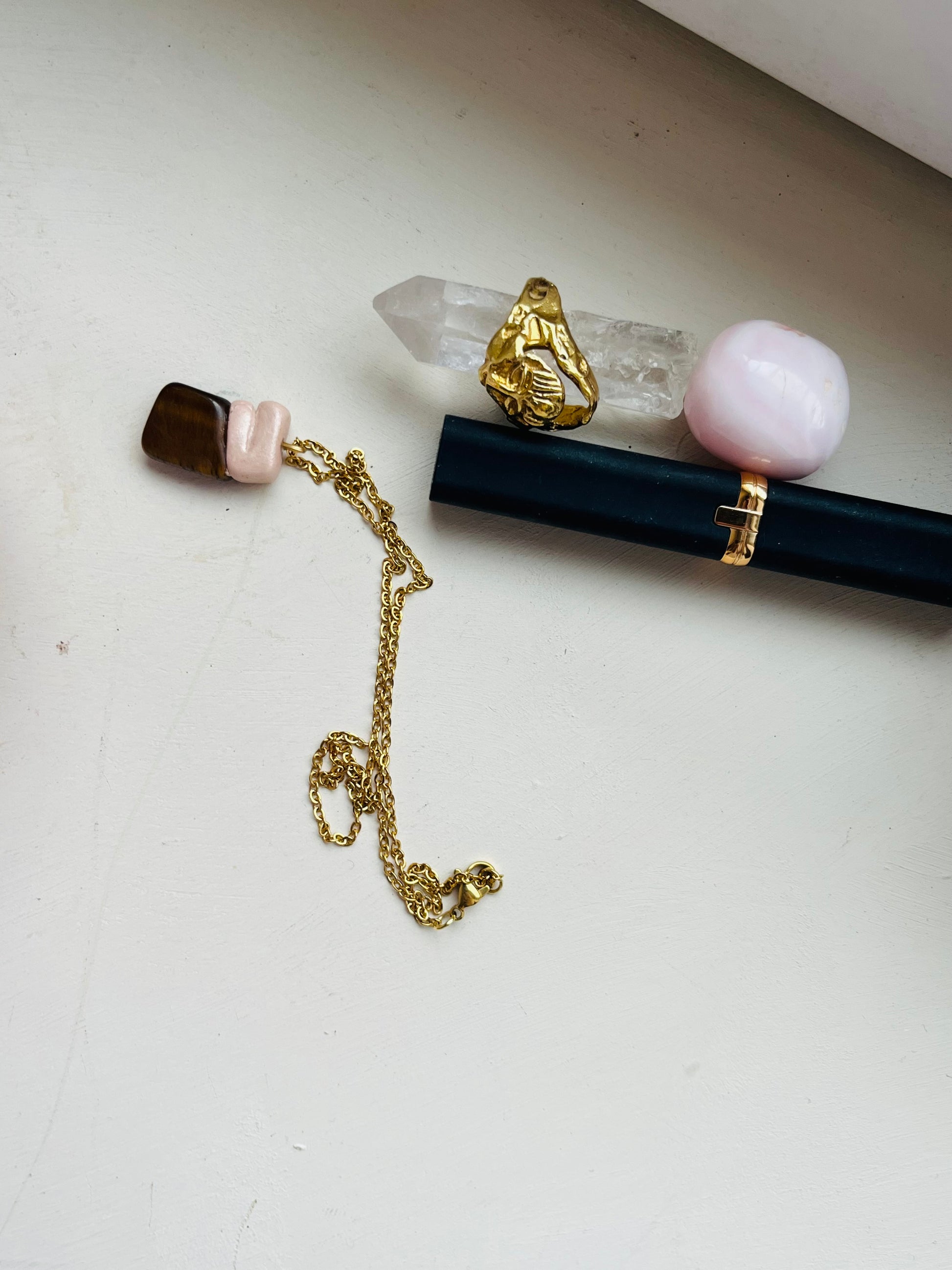 Aranyozott nemesacél lánc egy kézzel készült medállal.
